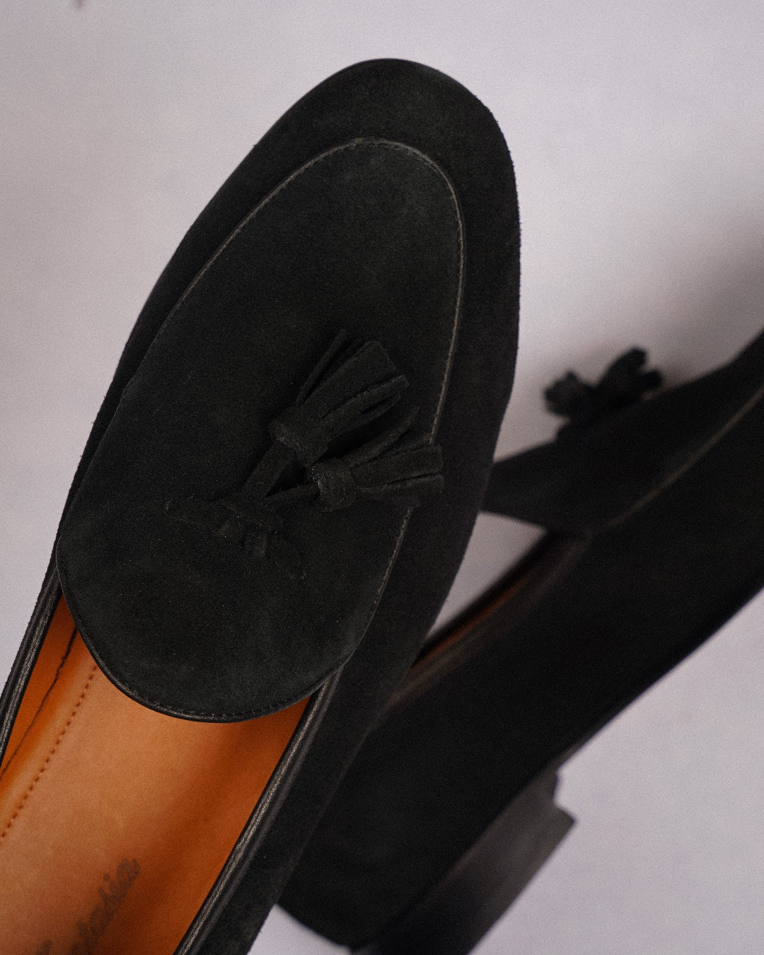 النوع: حذاء لوفر (Loafer) مزين بفيونكات (Tassel Loafer).